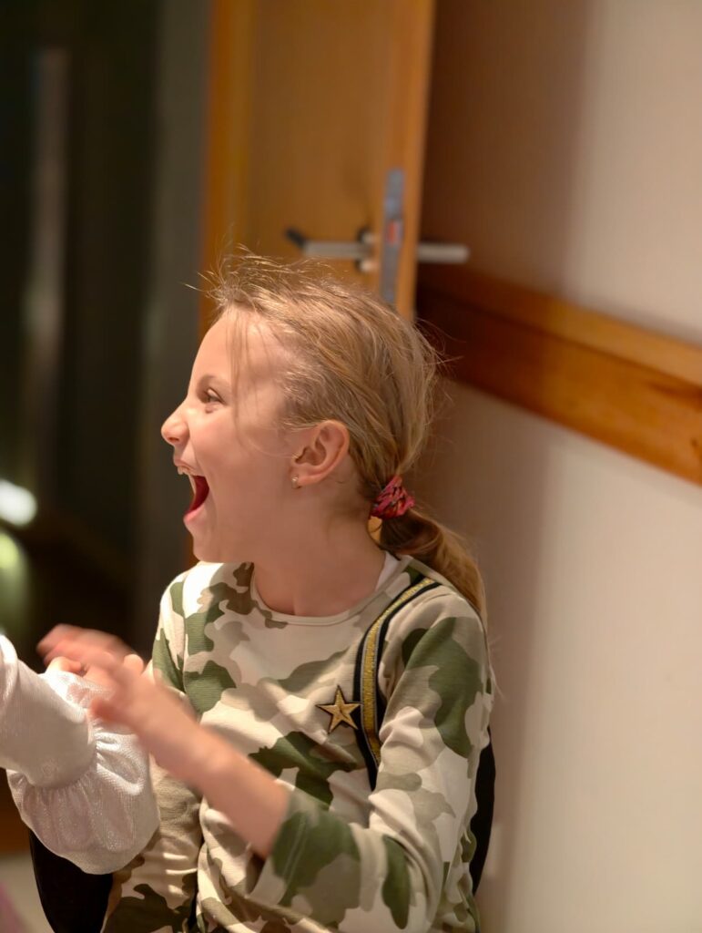 W kulisach sceny kręci się coś bardzo różowego. To małe wróżki urządzają sobie krótką próbę taneczną. Wirują na palcach, gną się w piruetach. Jako że nie mają profesjonalnych baletek (identyczny problem dotyczy tańczących laleczek, syrenek i akrobatek), zastępują je skarpetkami. I tak im się to podoba, że do samiutkiego końca przedstawienia biegają w nich, ewentualnie boso, po parkietach filharmonii. (Obejrzyj TUTAJ)