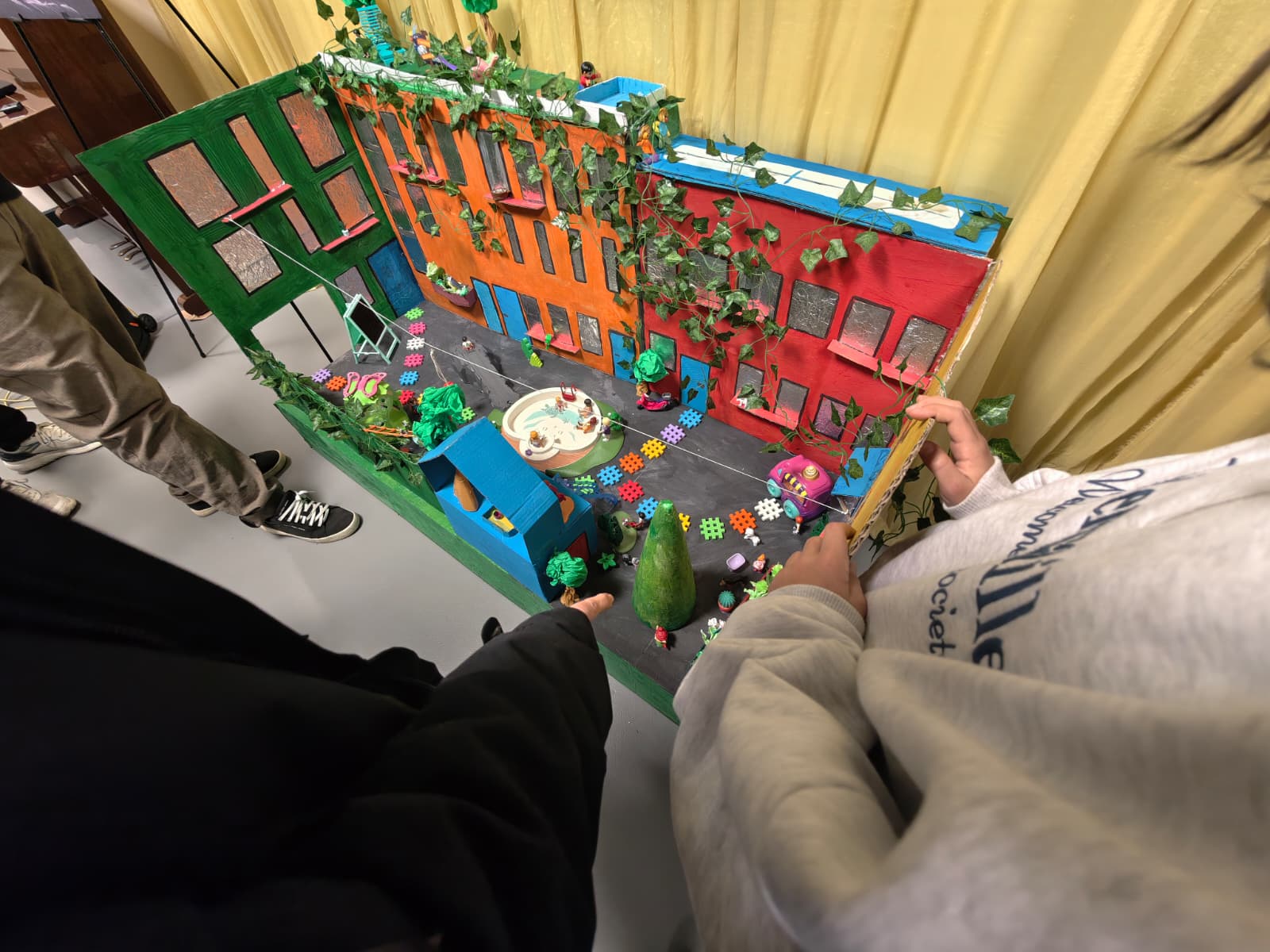 Maksimum uwagi ściągnęła makieta budynków i podwórka fundacji. Raj na ziemi – można powiedzieć, bo tyle przyjemnych miejsc umieścili tam autorzy. To największa gabarytowo atrakcja wystawy zorganizowanej w projekcie „Stare Miasto – Most międzypokoleniowy”.