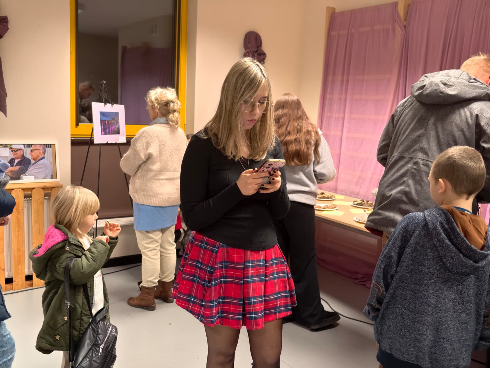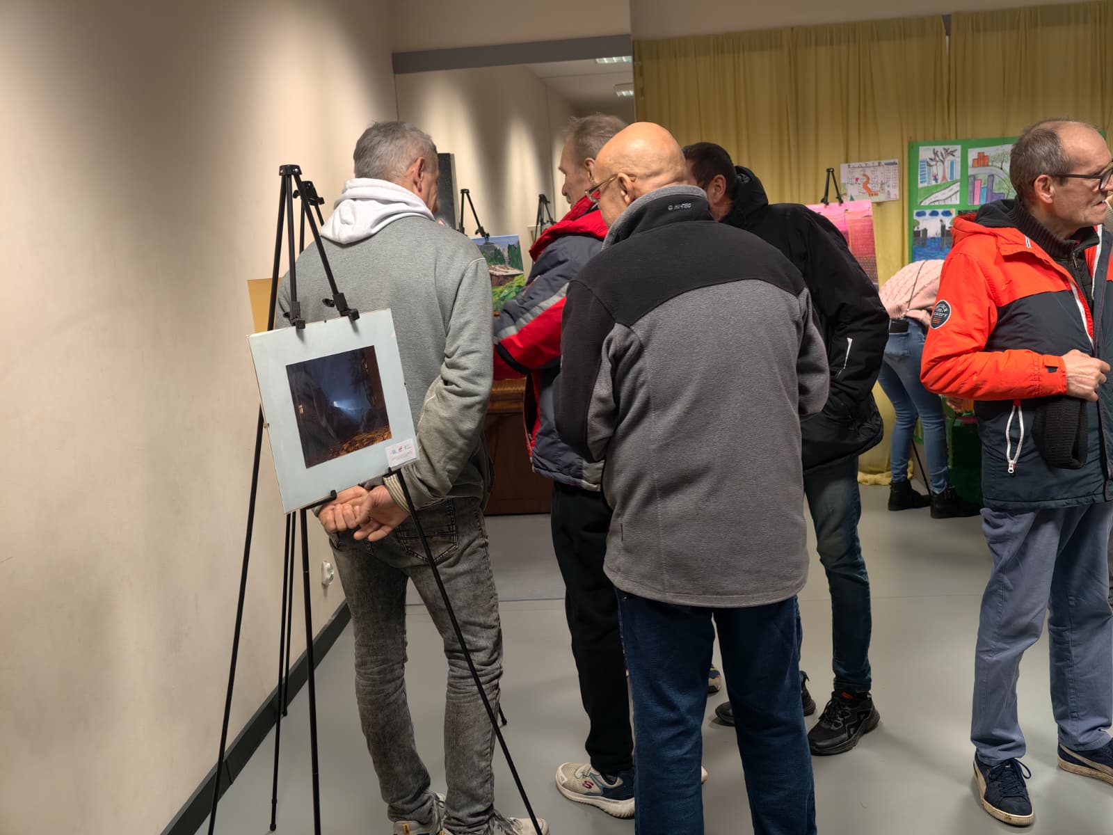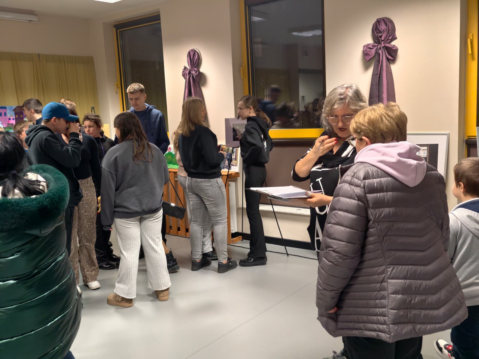 Zwiedzający wystawę dyskutowali też przy sztalugach, na których rozstawiono oprawione zdjęcia seniorów i rysunki najmłodszych. Wszystko to – jak na prawdziwym wernisażu – przy kawie, herbacie, ciasteczkach, a także okolicznościowych przemówieniach na temat projektu.