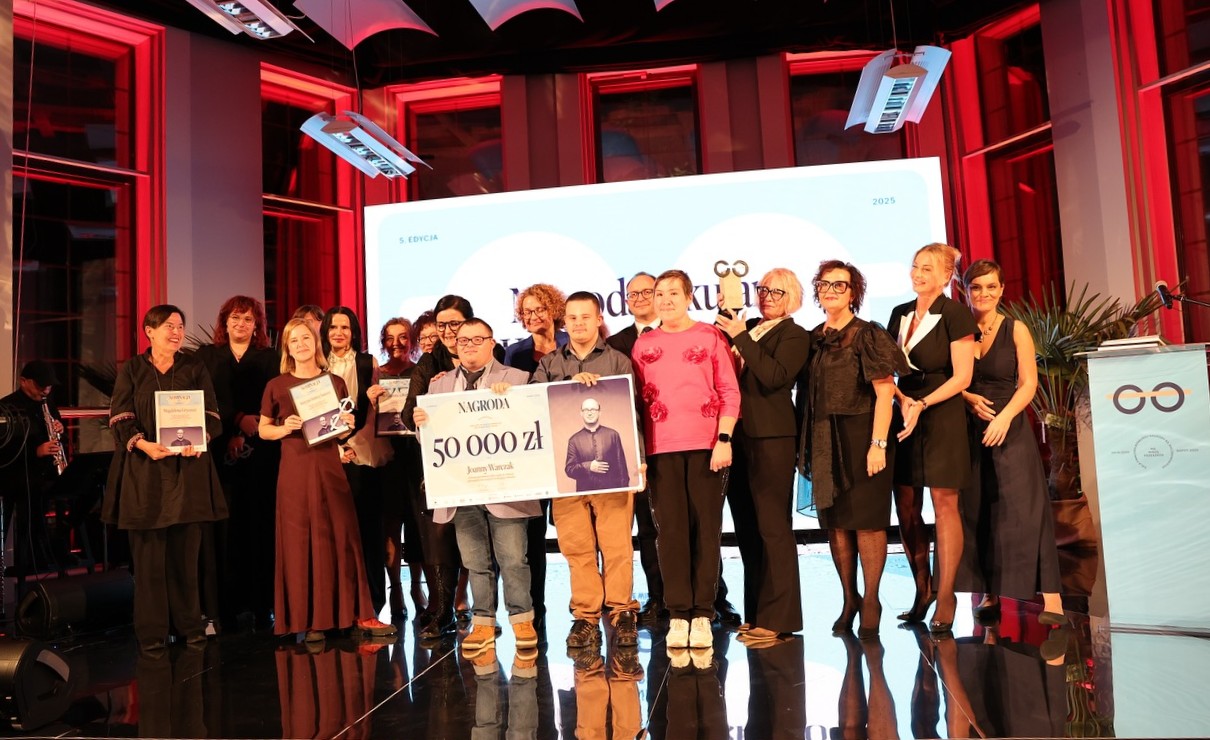 Ponieważ laureatka była wtedy w szpitalu, statuetkę i czek na 50 tys. zł odebrali w jej imieniu pracownicy i podopieczni Warsztatów. To był niezwykle wzruszający moment: chłopaki dumni, a panie opiekunki usiłujące coś powiedzieć przez łzy. Nas też w gardle ściskało.
