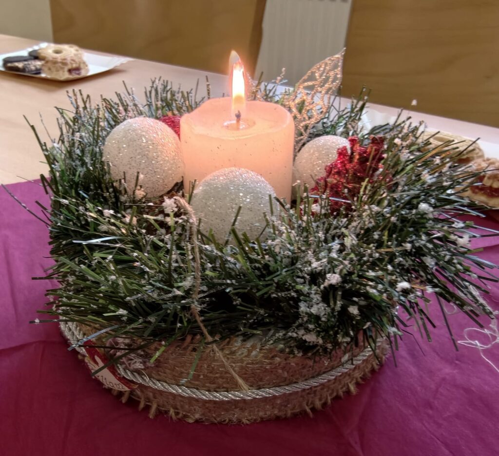 Było skromnie ale serdecznie: barszcz z uszkami, ryba, kapusta, ziemniaki, coś słodkiego… Ubraliśmy choinkę. W stroikach zdobiących stoły płonęły świeczki zapalone od Betlejemskiego Światełka Pokoju, przyniesionego nam przez harcerzy.