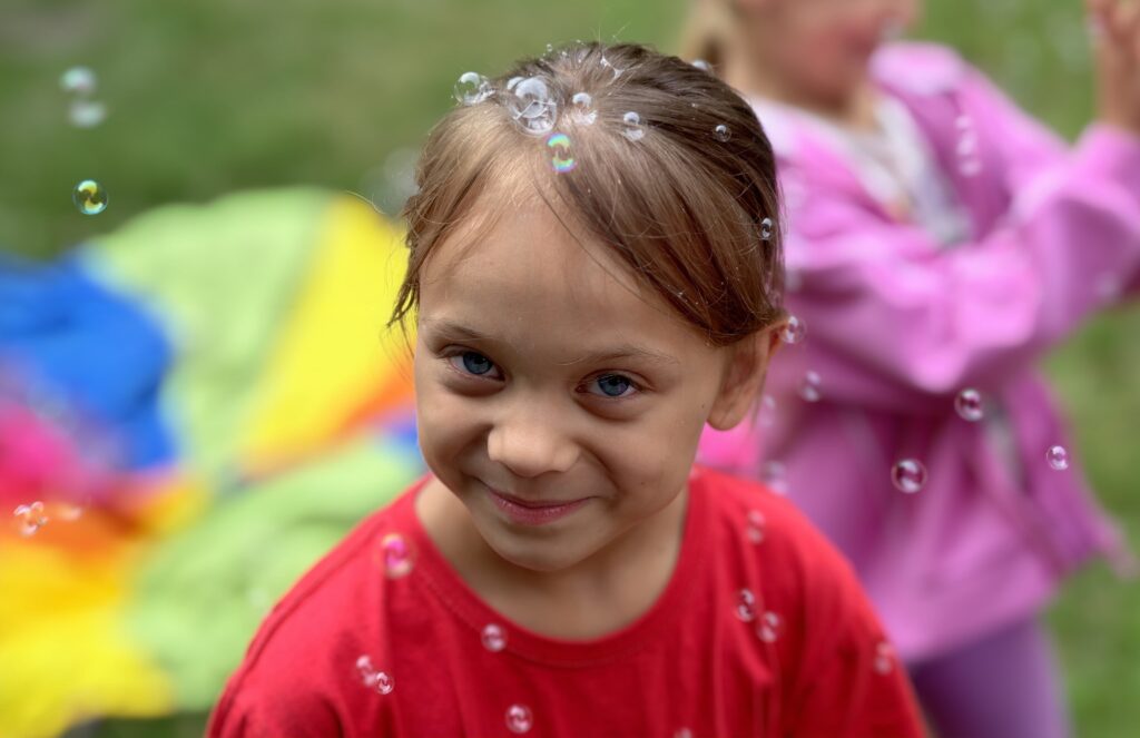 Po każdym popołudniu z książką dzieci brały się za puszczanie baniek mydlanych. Fot. Piotr Jaroszek