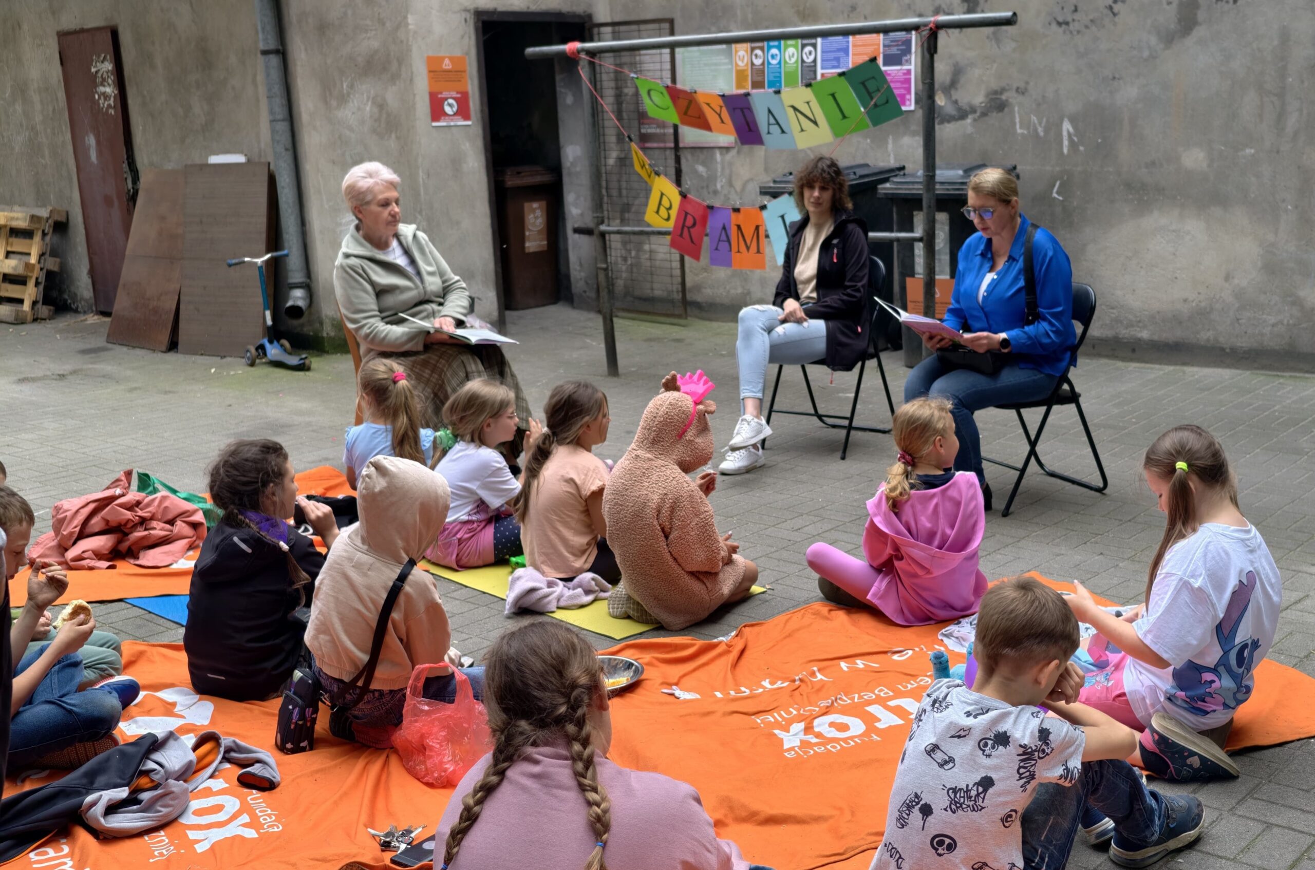 Kończy się lipiec a wraz z nim doroczna akcja naszej fundacji „Czytanie w bramie”. Jej założenia są proste: dzieci słuchają książek czytanych głośno przez dorosłych. Książki są nie tylko ciekawe i zabawne, ale też pouczające. Lektura odbywa się na świeżym powietrzu, zwykle na podwórkach Starego Miasta.